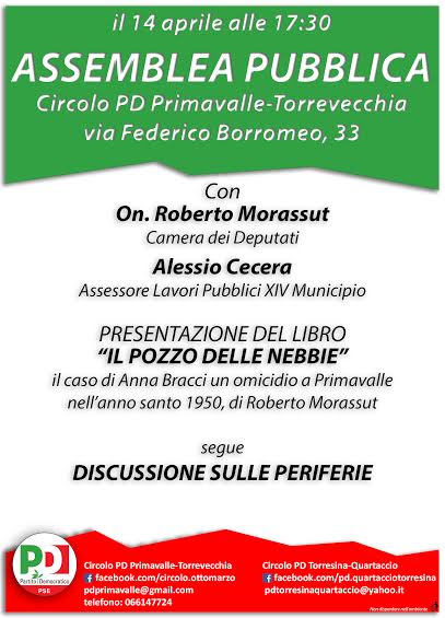Presentazione del libro di Roberto Morassut "Il pozzo delle Nebbie" il delitto di Anna Bracci nella Primavalle anni '50, presso il circolo PD Primavalle-Torrevecchia.